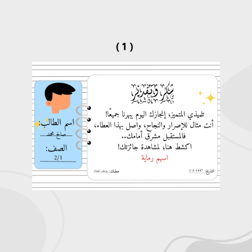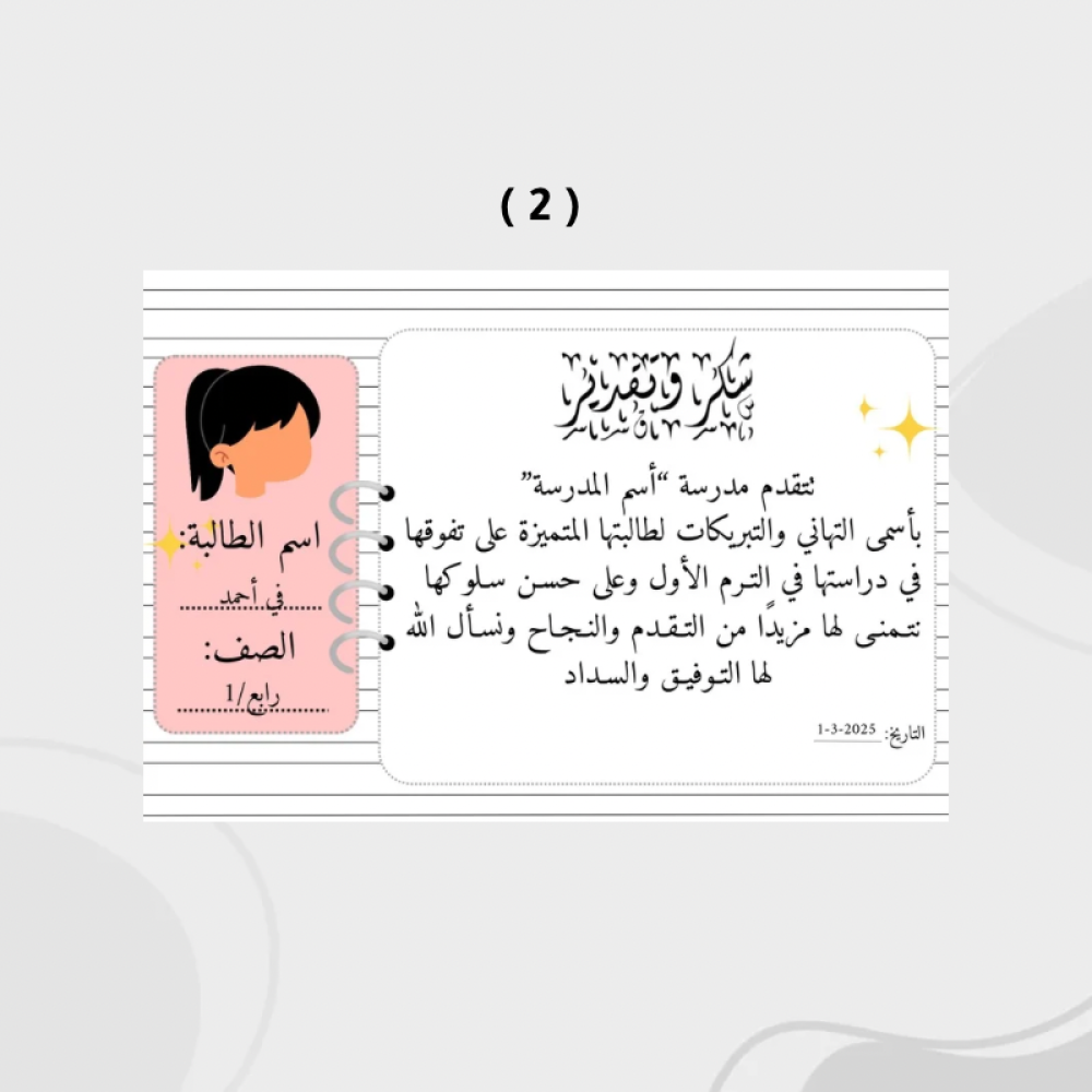 ✔️ يتم إعدادها لك شخصيًا (اسم الطالب، سبب الشكر، التاريخ…)